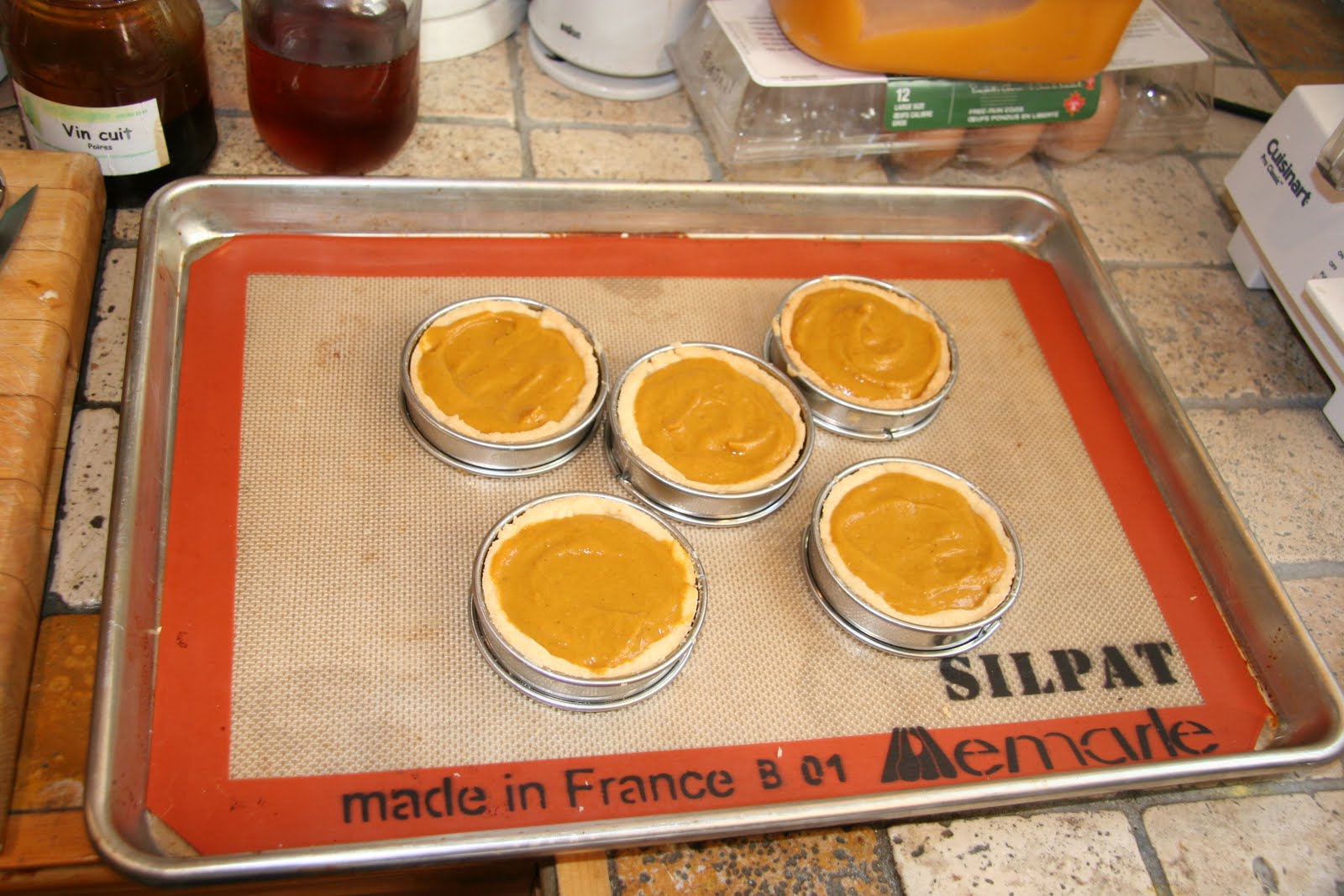 Mix all the above ingredients in a bowl with a whisk until smooth. Spoon into baked tart shells and level with an offset spatula.